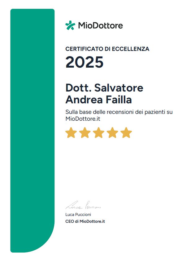 Il Dott. Failla è un ottimo specialista, cordiale e allo stesso tempo professionale e competente . Ti mette a suo agio, conosce l'umiltà, il rispetto, l'onestà e l'amore per il suo lavoro. Ho trovato un medico molto scrupoloso, preparato e attento, ma soprattutto mi ha resa partecipe della visita, spiegando in modo chiaro il problema e relativi preziosi consigli. Lo consiglio a tutti.