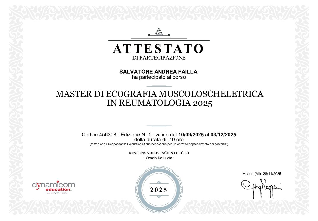 Sono stato dal dott. Salvatore Andrea Failla per una prima visita riguardo a un problema di dolore a piedi, caviglie e ginocchia che mi affligge da ormai tre anni. Oltre alla visita, ha effettuato immediatamente un’ecografia, spiegandomi e mostrandomi in modo chiaro la causa dei miei dolori.